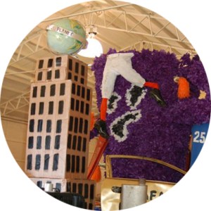 The task was clear…build a 23′ long rolling tribute to our football team and our beloved mascot (the Purple Hurricane). It must recognize our opponent (the Buccaneers), be based on the board game Battleship and include our gargantuan chicken-wire hurricane stuffed with purple tissue paper. The funds to pay for this $700 masterpiece must be raised. Lastly, all work must be done solely by students within a supervised 10 hour period. Translation: Once again I would have to peddle doughnuts on street corners, hunt for supplies and beg for volunteers.